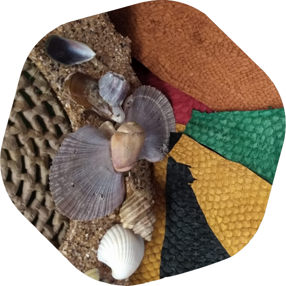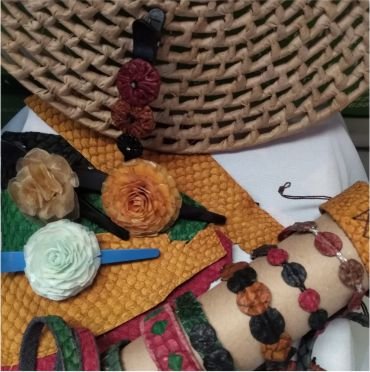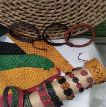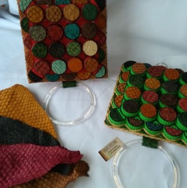 Nossos produtos são desenvolvidos a partir de produtos recicláveis e couro natural de peixe.